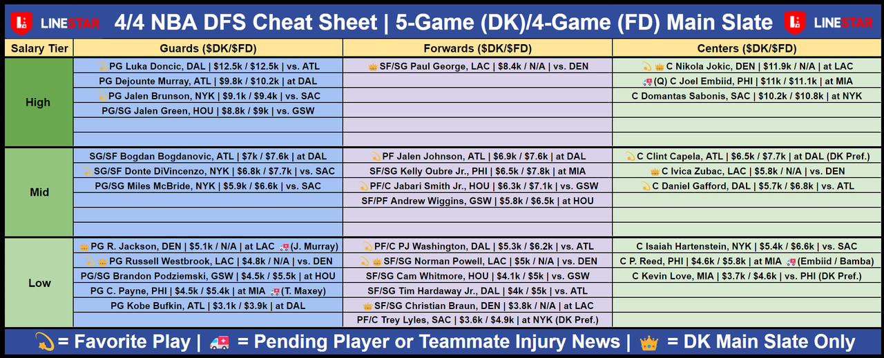 - April 4th NBA DFS Cheat Sheet | Plenty of Playoff Implications Tonight!