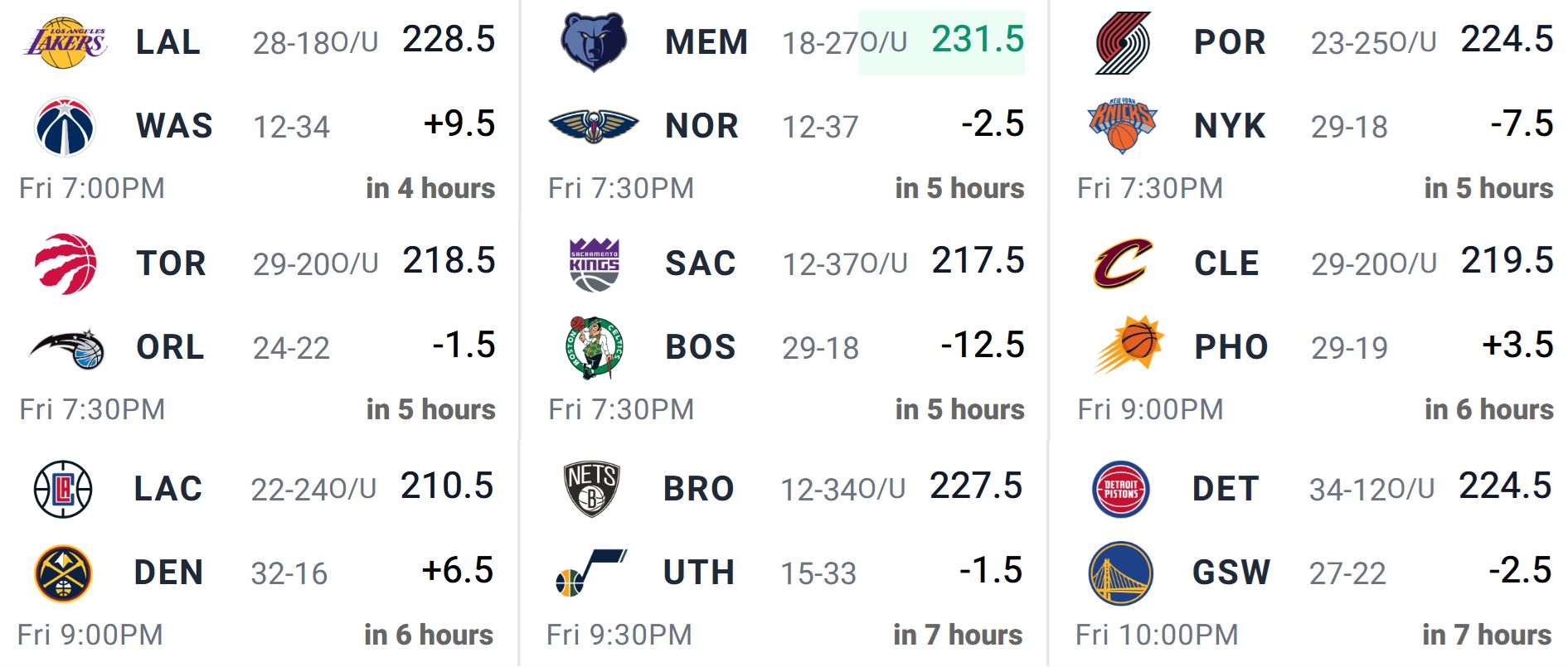 For the third straight day, we’re treated to a sizable NBA slate as we kick off the weekend with a nine-game Friday main slate. Like yesterday, there aren’t many massive totals on the board – only one game carries an over/under north of 230 points – but we do have plenty of competitive matchups, with just one game sporting a double-digit spread. Injuries will once again play a major role in shaping this slate, as several star players have already been ruled out. The good news is that there are only a few true impact players carrying questionable tags, which should help keep the load of tracking news manageable as lock approaches. It’s shaping up to be a fun (and hectic) slate, so let’s dive in. Best of luck!