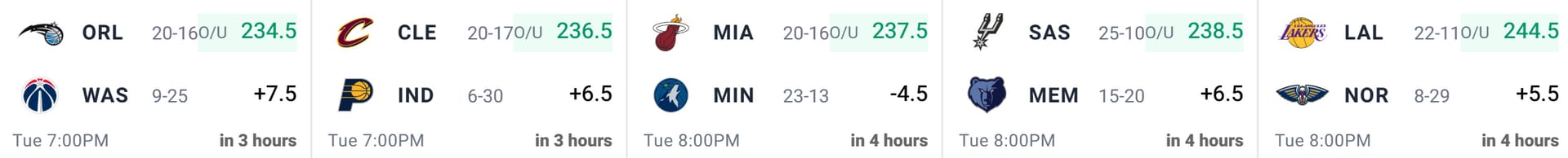 We roll into Tuesday with an intriguing five-game main slate on deck. Both DraftKings and FanDuel have elected to exclude the late 11 ET Mavs/Kings matchup, so all games on the slate will tip within a relatively tight one-hour window. We’re looking at high totals across the board, with over/unders ranging from 234.5 to 244.5 points, and the matchups are fairly competitive, with no spread wider than 7.5 points.