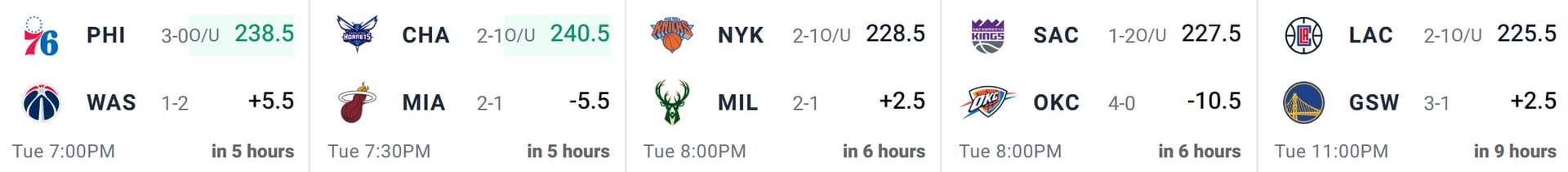 A modest five-game main slate lands on the Tuesday ticket! With fewer games on tap, we get a bit of a breather from the chaos that’s been running wild on those larger early-season slates. Don’t get me wrong—I love those monster 9-, 10-, and 11-game slates—but it’s nice to catch a smaller one every now and then. We do have a late 11:00 p.m. ET tip on the West Coast between the Clippers and Warriors, which isn’t ideal for us East Coasters (unless you’re a night owl). Luckily, there aren’t many key injury situations to monitor there, so you should be safe calling it a night before that one tips. Let’s get into it—best of luck!