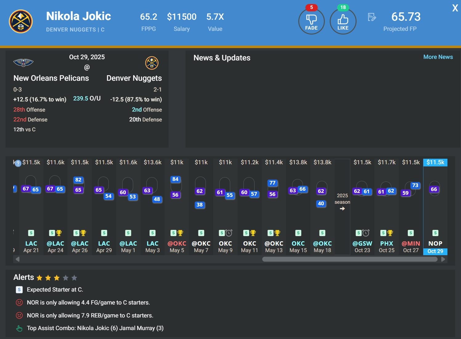 C Nikola Jokic, DEN | DK: $11.5k, FD: $12.1k | vs. NOP