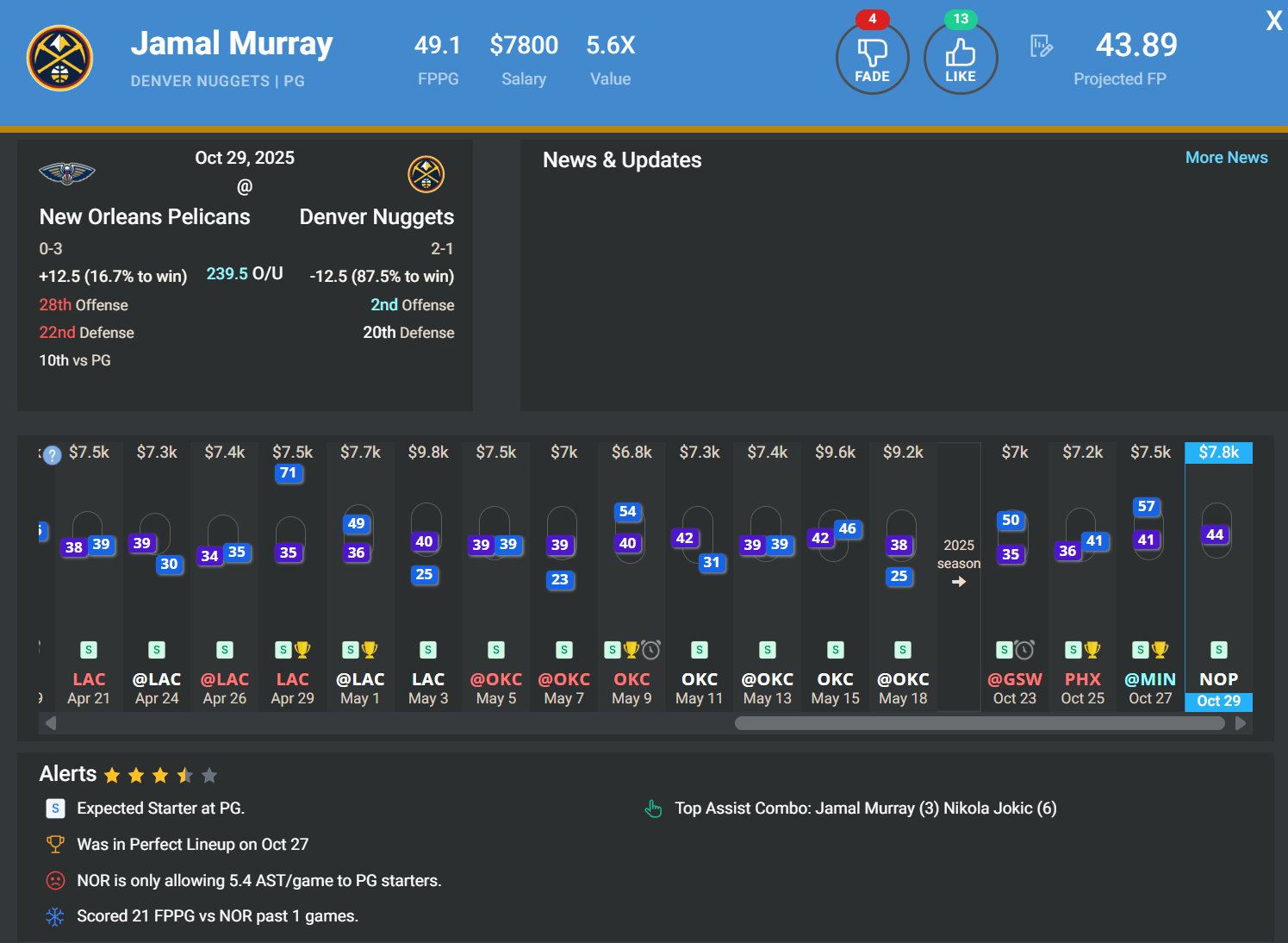 PG Jamal Murray, DEN | DK: $7.8k, FD: $8.1k | vs. NOP