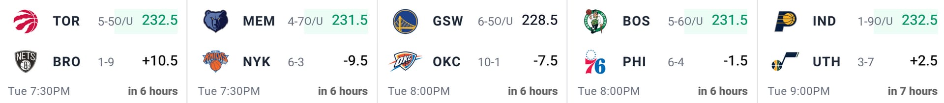 Main Slate Match-Ups w/ Game Totals & Point Spreads