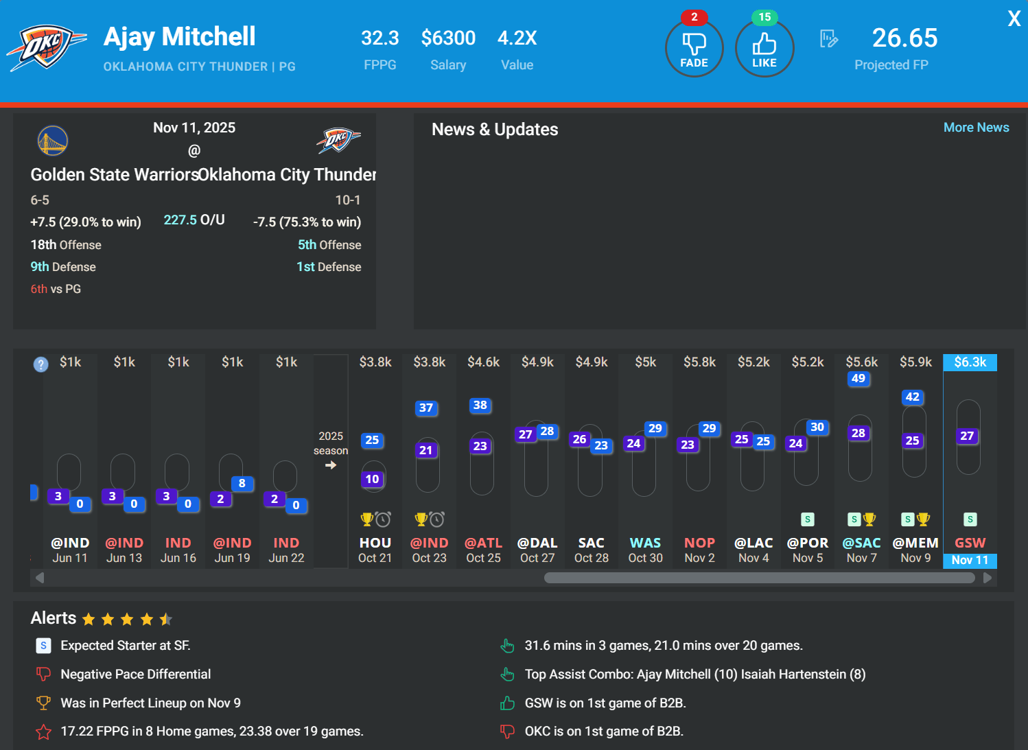 PG Ajay Mitchell, OKC | DK: $6.3k, FD: $6k | vs. GSW