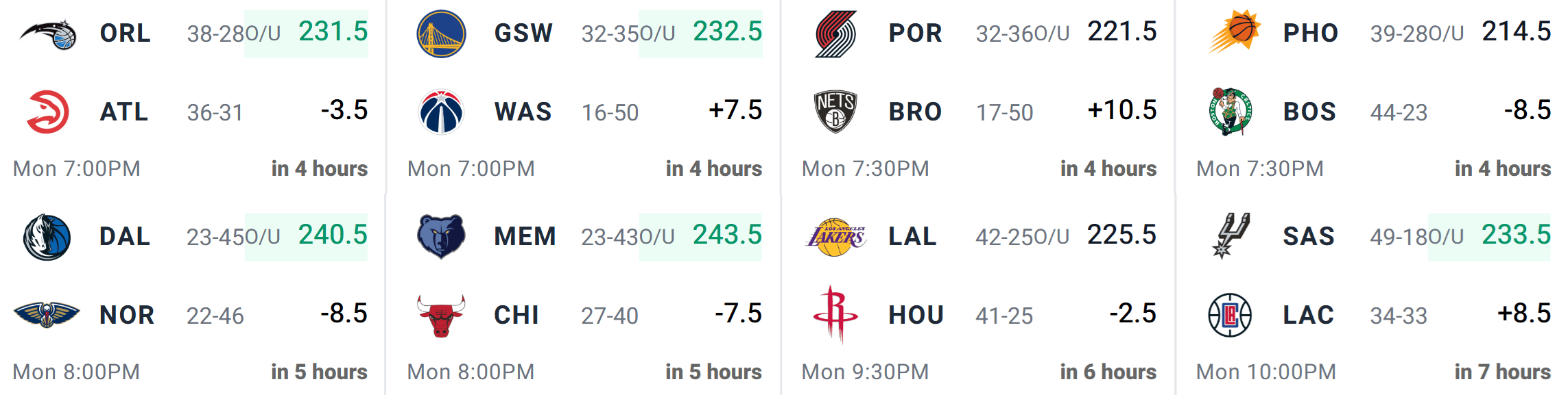 The matchups look appealing today, with only one game (POR/BKN) carrying a double-digit spread. We also have several contests featuring totals north of 230 points, giving us a few strong environments to target.