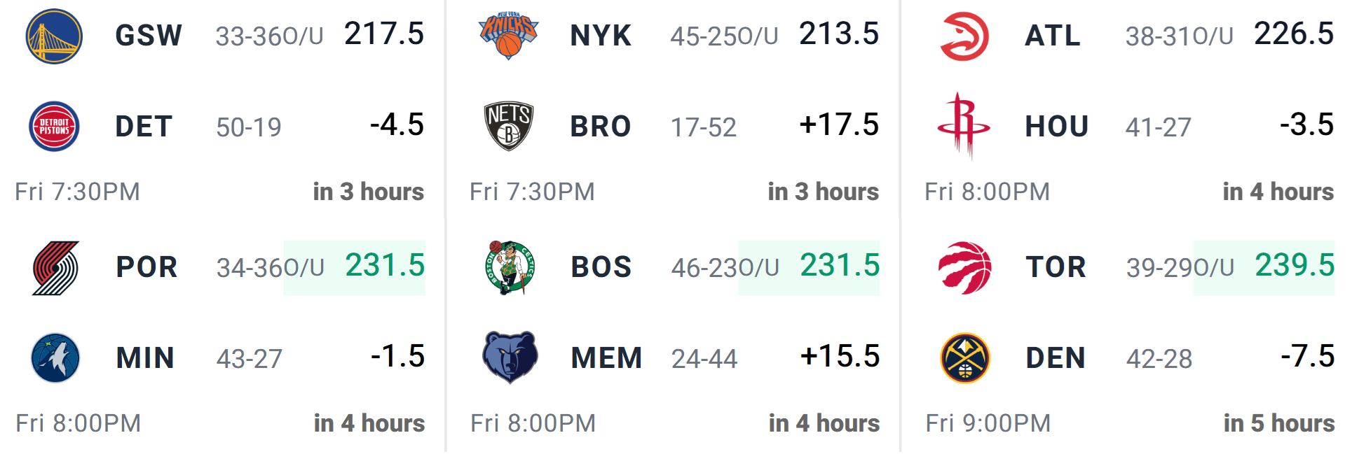 Main Slate Match-Ups w/ Game Totals & Point Spreads