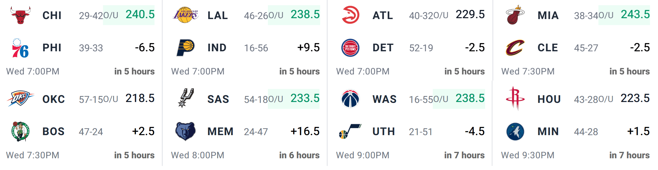 Main Slate Match-Ups w/ Game Totals & Point Spreads