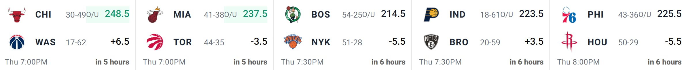 Main Slate Match-Ups w/ Game Totals & Point Spreads