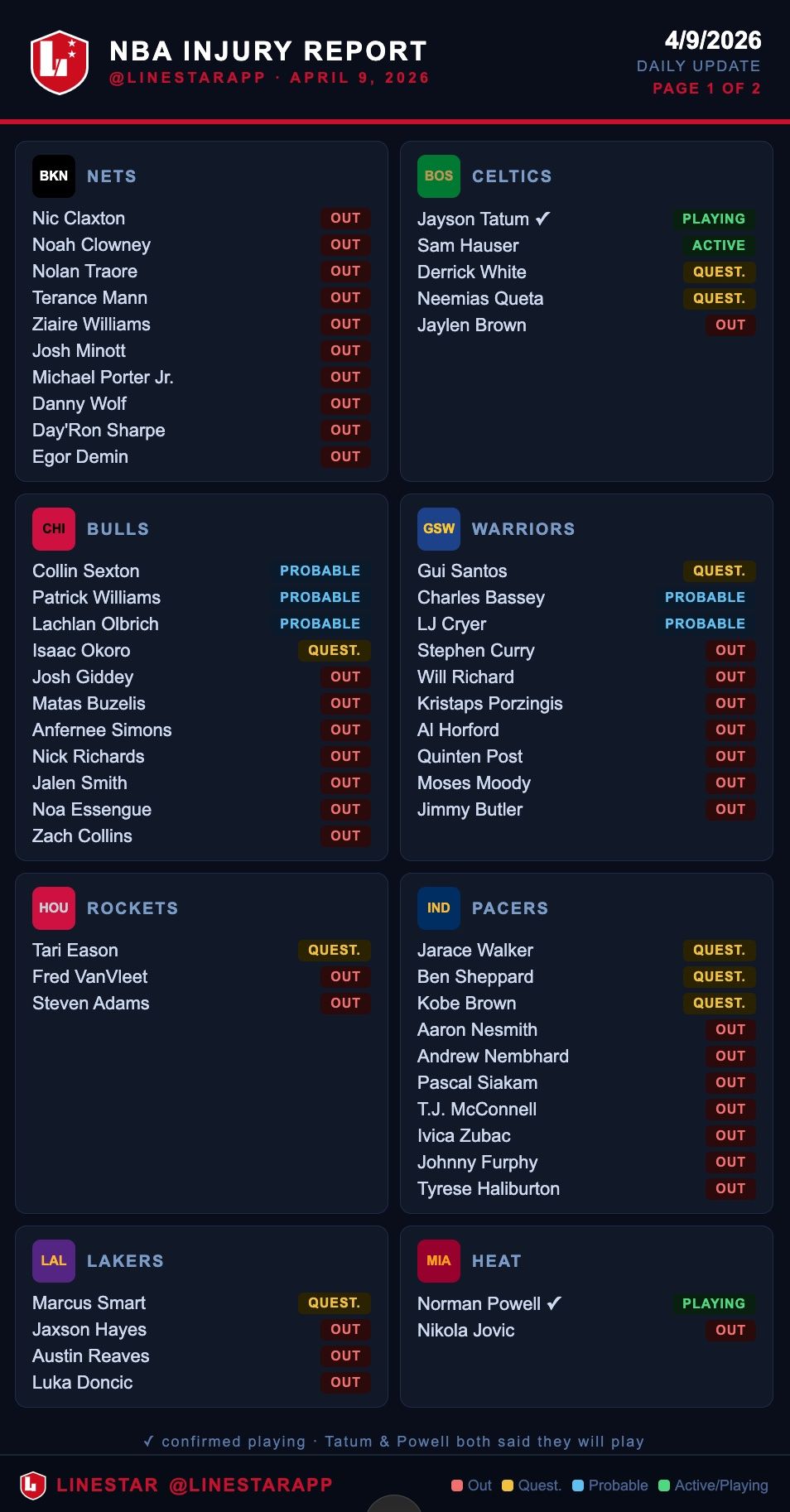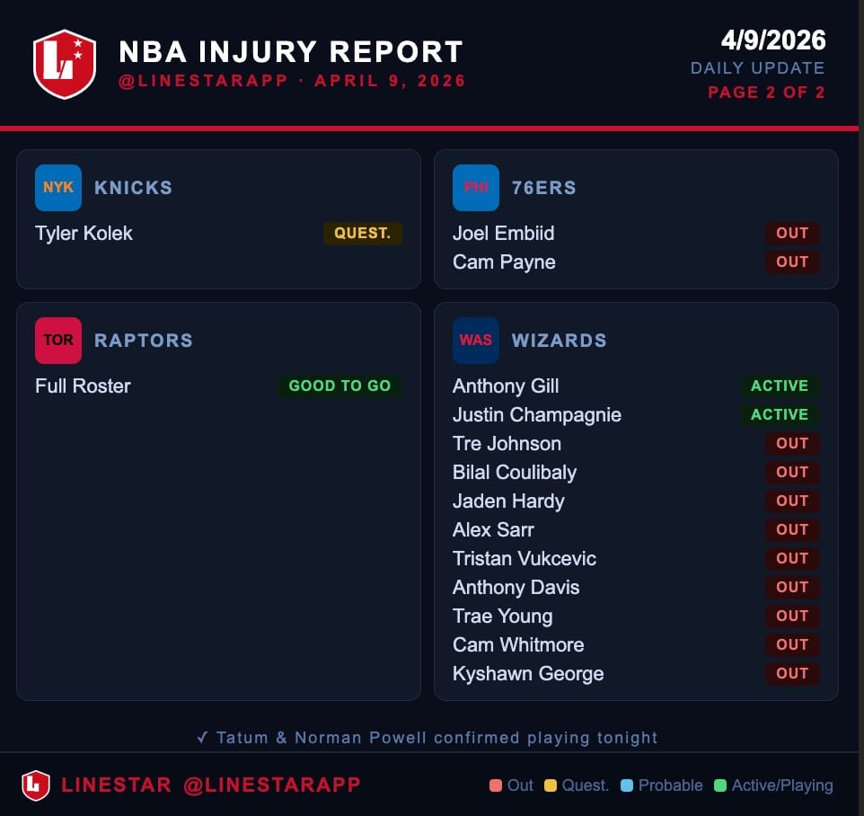 Today’s Key Injuries 🚑